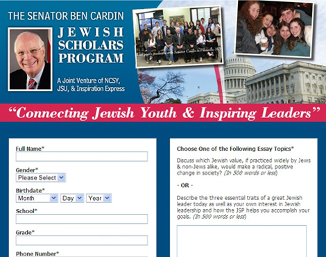 The Senator Ben Cardin Jewish Scholars Program is a joint venture of NCSY, JSU, and Inspiration Express. The program's goals are to connect capable, inspired Jewish youth with Jewish leaders who can further inspire and mentor them. MTM created a one-page website enabling applicants to submit their personal details and essays over a secure server, in order to be considered for the program. Visit the site at www.cardinscholars.com.