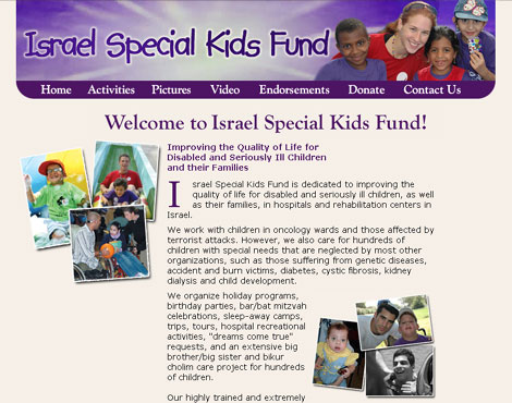 Israel Special Kids Fund is a non-profit organization established in 1998, and is dedicated to improving the quality of life for disabled and seriously ill children, as well as their families, in hospitals and rehabilitation centers in Israel. MTM designed an attractive informational site that provides English-speaking people access to information about the organization, as well as an image gallery of recent programs and a secure donation page. Visit the Israel Special Kids Fund website at: www.israelspecialkids.com.
