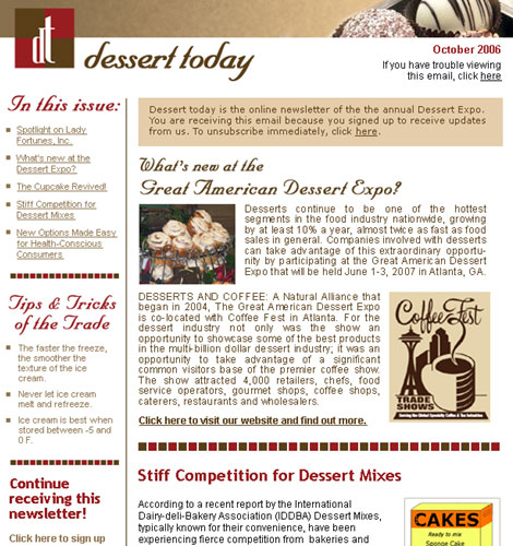 Template for Dessert Today, the official newsletter of the Great American Dessert Expo.